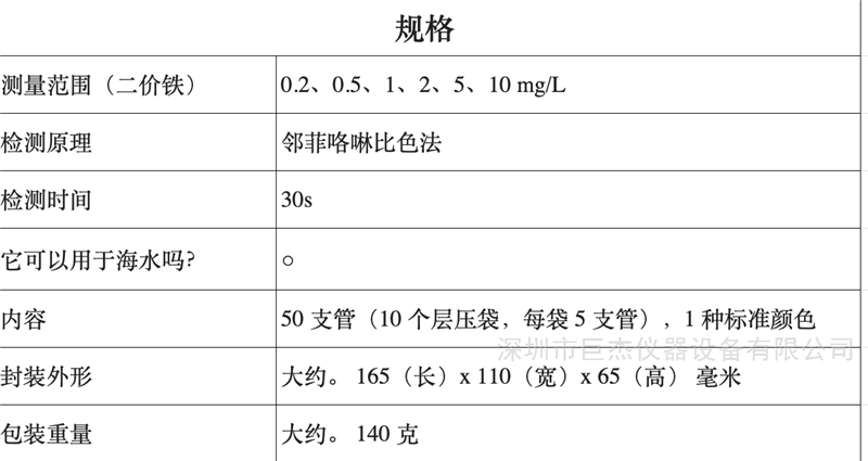 | 测量范围(二价铁) | 0.2、0.5、1、2、5、10 mg/L |